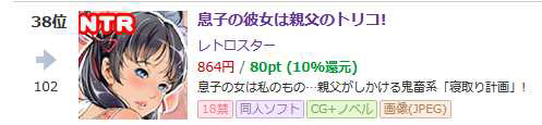 これはまさにDL市場界の最速ですよ!スタッフの頑張りは素直に賞賛されるべきだと思いますよ~!! 今回私が、サークル「レトロスター」から出した新作の「息子の彼女は親父のトリコ!」というフルカラーコミック+CG集はそもそもがDMMメインで売る計画だったので、図らずもそれが私の計画と一致してしまいましたし… このテの絵柄と内容はDMMだとかなりの高確率でウケるんですよ… でもDLーSiteは、今風のアニメ絵がメインなので…ちょっと苦戦が予想されますね~ それでもある程度は売れてくれるとありがたいです~ DMMリンク |